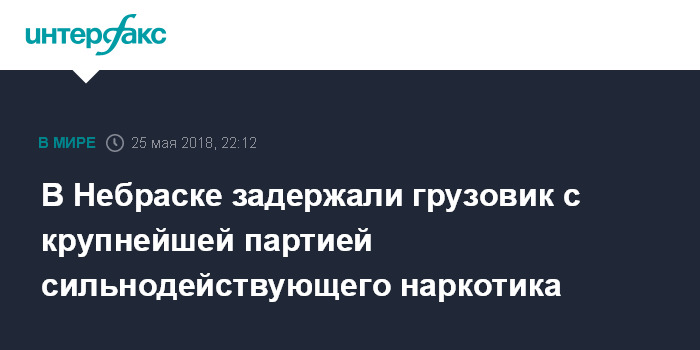 Москва. 25 мая. INTERFAX.RU - В американском штате Небраска задержан грузовик, перевозивший более 50 кг наркотика фентанил, сообщает в пятницу газета The Washington Post.