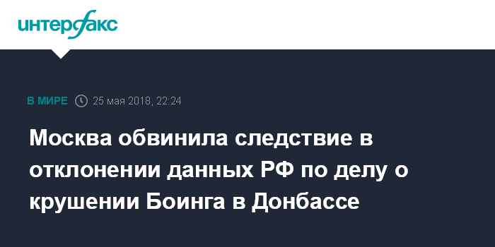 Москва обвинила следствие в отклонении данных РФ по делу о крушении Боинга в Донбассе