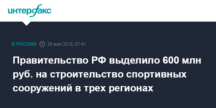 Правительство РФ выделило 600 млн руб. на строительство спортивных сооружений в трех регионах