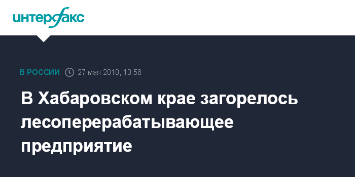 Москва. 27 мая. INTERFAX.RU - Оперативная авиагруппа МЧС вылетела на тушение пожара на одном из лесоперерабатывающих предприятий в поселок Лидога Хабаровского края.