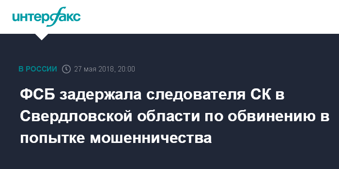 ФСБ задержала следователя СК в Свердловской области по обвинению в попытке мошенничества