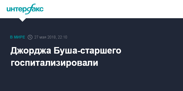 Москва. 27 мая. INTERFAX.RU - Бывший президент США Джордж Буш-старший попал в больницу из-за пониженного кровяного давления, сообщил официальный представитель политика Джим Макграт.