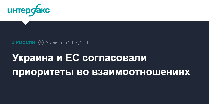 Киев. 5 февраля. INTERFAX.RU - В ходе заседания Украина - Тройка ЕС на министерском уровне согласованы приоритеты в отношениях между Украиной и ЕС на 2009 г., сообщает пресс-служба Министерства иностранных дел Украины в четверг.