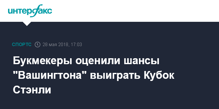 Москва. 28 мая. INTERFAX.RU - Дебютант Национальной хоккейной лиги (НХЛ) "Вегас" является фаворитом финальной серии розыгрыша Кубка Стэнли против "Вашингтона", считают букмекеры.