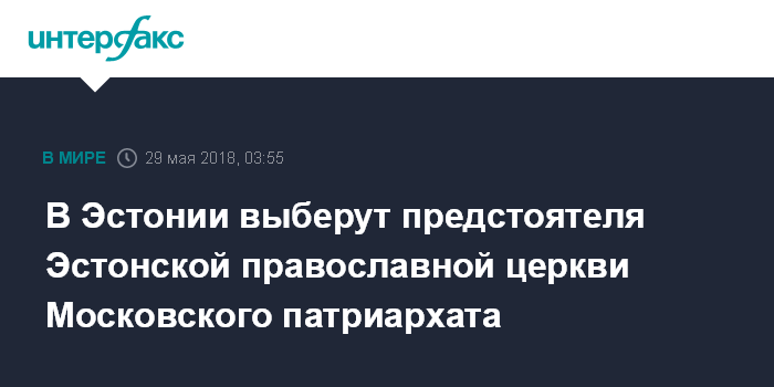 Москва. 29 мая. INTERFAX.RU - В Эстонии во вторник состоится собор Эстонской православной церкви Московского патриархата (ЭПЦМП), на котором предстоит избрать ее предстоятеля.