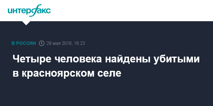 Москва. 29 мая. INTERFAX.RU - Полицейский обнаружил тела четырых человек в селе Тасеево Красноярского края, сообщает пресс-служба главного управления СКР по региону во вторник.