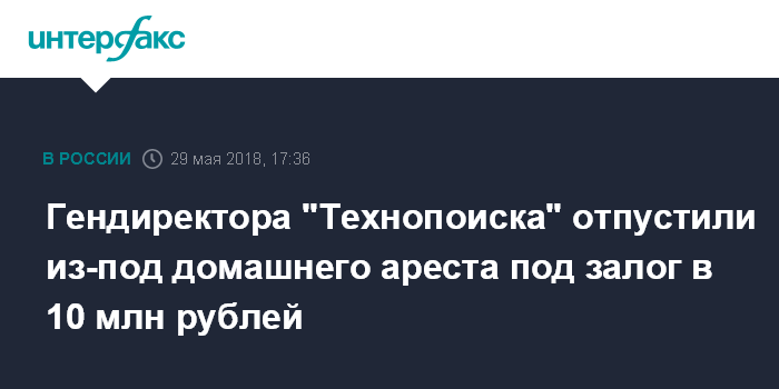 Гендиректора "Технопоиска" отпустили из-под домашнего ареста под залог в 10 млн рублей