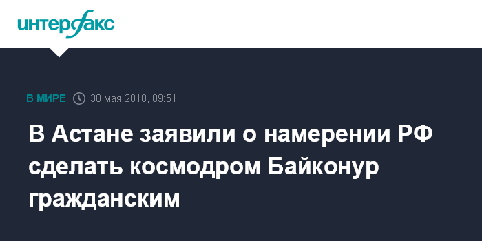 В Астане заявили о намерении РФ сделать космодром Байконур гражданским