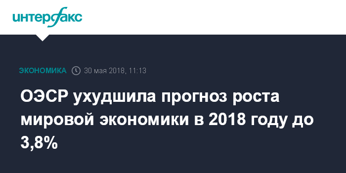 Москва. 30 мая. INTERFAX.RU - Организация экономического сотрудничества и развития (ОЭСР) понизила прогноз роста глобальной экономики на текущий год и сохранила прогноз на следующий год.