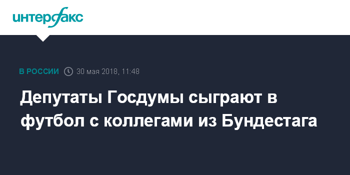 Москва. 30 мая. INTERFAX.RU - Депутаты Госдумы проведут дружеский футбольный матч с коллегами из Бундестага, заявил "Интерфаксу" в среду первый вице-спикер Госдумы Александр Жуков.
