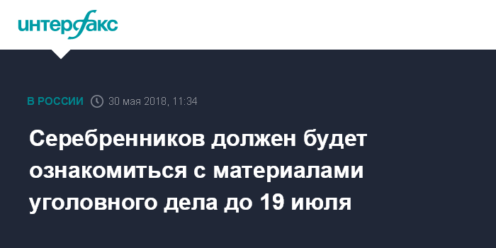 Серебренников должен будет ознакомиться с материалами уголовного дела до 19 июля