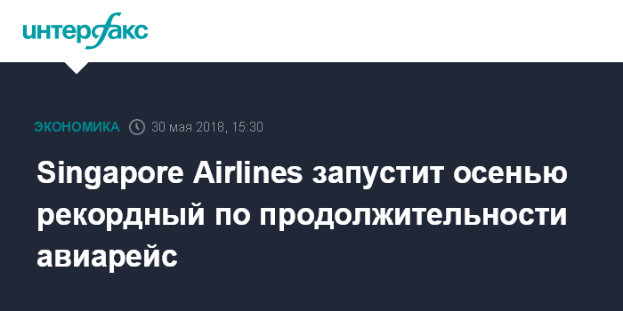 Singapore Airlines запустит осенью рекордный по продолжительности авиарейс