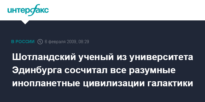 Дункан Форган из шотландского университета Эдинбурга подсчитал, что" в нашей галактике существует, по меньшей мере, 361 разумная цивилизация, а их максимальное число - 38 тысяч. Однако даже при максимальном числе цивилизаций вряд ли контакт с другими мирами будет установлен".