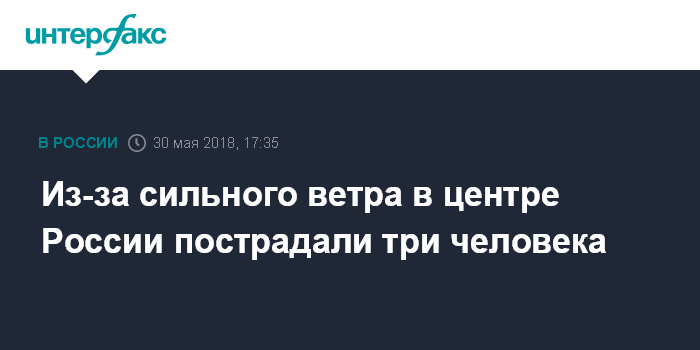 Москва. 30 мая. INTERFAX.RU - Три человека получили травмы из-за сильного ветра в средней полосе России, сообщили "Интерфаксу" в Центральном региональном центре МЧС.