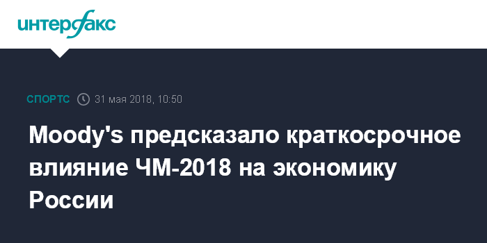 Москва. 31 мая. INTERFAX.RU - Экономические выгоды для России от проведения чемпионата мира по футболу будут краткосрочными, сообщается в отчете международного рейтингового агентства Moody's Investors Service.