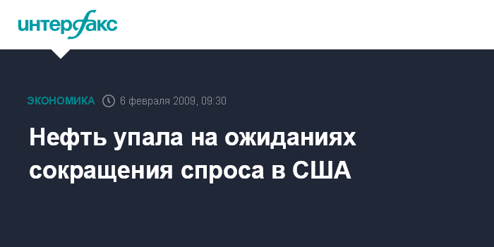 Москва. 6 февраля. INTERFAX.RU - Цена нефти упала на ожиданиях сокращения спроса на топливо в США из-за ухудшения экономических показателей, в частности роста безработицы, сообщило агентство Bloomberg.