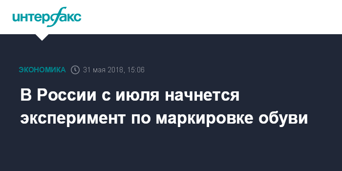 Москва. 31 мая. INTERFAX.RU - Эксперимент по маркировке обувных товаров средствами идентификации пройдет в России с 1 июня 2018 года по 30 июня 2019 года. Соответствующее постановление от 30 мая опубликовано на сайте правительства.