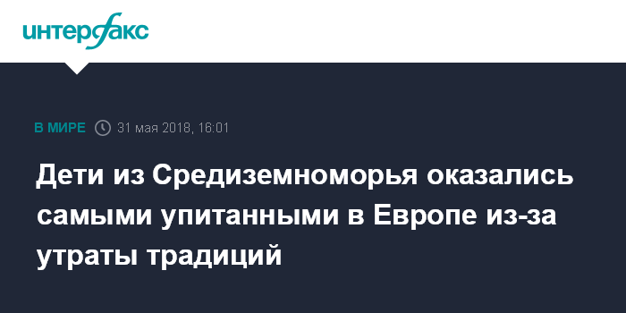 По оценкам ВОЗ, дети в странах Средиземноморья оказались толще сверстников из других европейских государств: на Кипре 43% мальчиков и девочек девяти лет страдают от лишнего веса или ожирения, в Греции, Италии и Испании этот показатель также выше 40%.