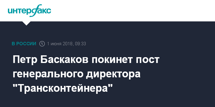 Один из собеседников издания сообщил, что о планах отойти от руководства "Трансконтейнером" Баскаков "объявил неформально на совете директоров в конце марта", кто займет его место, пока не решено.