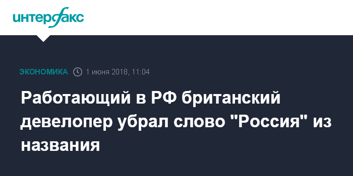 Работающий в РФ британский девелопер убрал слово "Россия" из названия