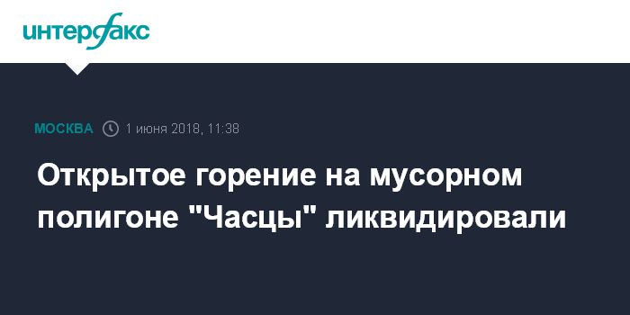 Москва. 1 июня. INTERFAX.RU - Открытое горение на полигоне ТБО "Часцы" в Одинцовском районе Подмосковья ликвидировано, для устранения тления и угроз новых возгораний ведётся пересыпка грунта, сообщили в пресс-службе районной администрации.
