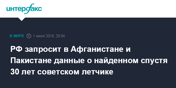 РФ запросит в Афганистане и Пакистане данные о найденном спустя 30 лет советском летчике