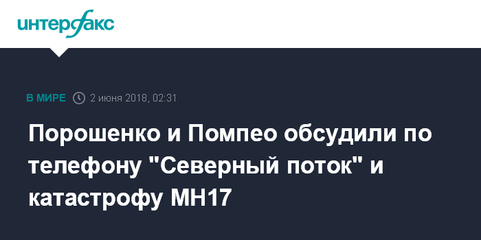 Порошенко и Помпео обсудили по телефону "Северный поток" и катастрофу МН17