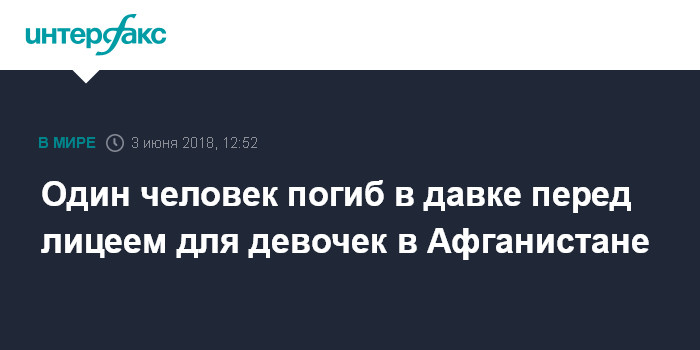 Москва. 3 июня. INTERFAX.RU - Одна студентка погибла и 21 пострадали в результате давки, которая образовалась перед зданием лицея для девочек Fatemeh Balkhi в городе Мазари-Шариф на северо-западе Афганистана, сообщили в воскресенье местные СМИ.