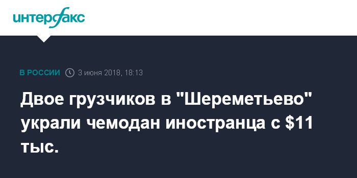 Москва. 3 июня. INTERFAX.RU - Сотрудники МВД задержали подозреваемых в краже денежных средств из багажа авиапассажира на сумму 11000 долларов США, сообщила "Интерфаксу" официальный представитель МВД России Ирина Волк.