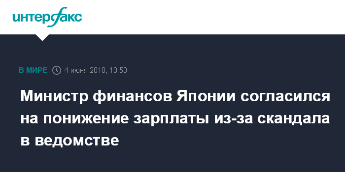 Министр финансов Японии согласился на понижение зарплаты из-за скандала в ведомстве