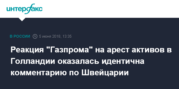 Реакция "Газпрома" на арест активов в Голландии оказалась идентична комментарию по Швейцарии