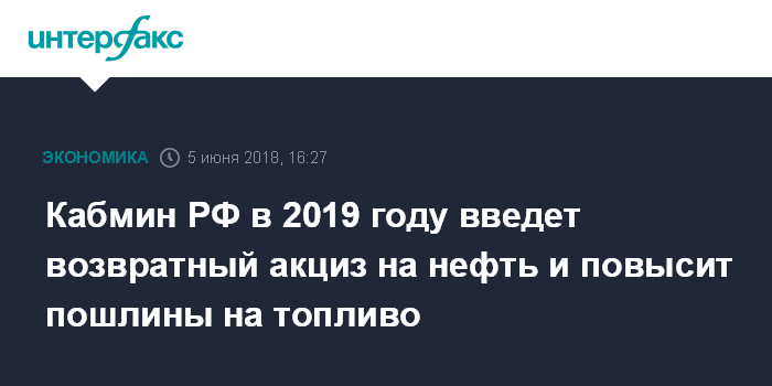 Кабмин РФ в 2019 году введет возвратный акциз на нефть и повысит пошлины на топливо