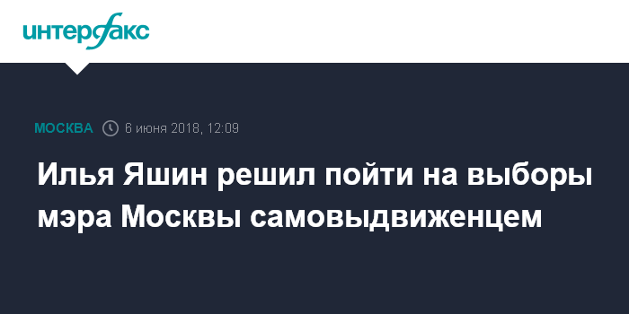 Москва. 6 июня. INTERFAX.RU - Глава Красносельского муниципального округа Илья Яшин пойдет на выборы мэра Москвы самовыдвиженцем, намерен продолжать переговоры по выдвижению единого кандидата от оппозиции.