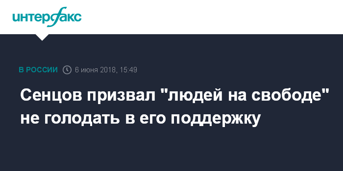 Сенцов призвал "людей на свободе" не голодать в его поддержку