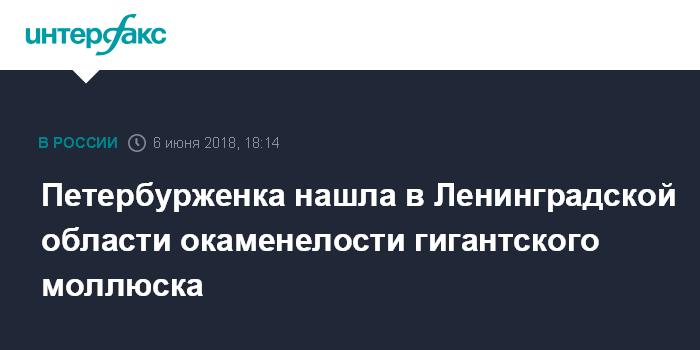 Москва. 6 июня. INTERFAX.RU - Жительница Петербурга нашла на берегу реки Тосно в Ленобласти окаменелости гигантского моллюска и древней мшанки, сообщили в Санкт-Петербургском государственном университете (СПбГУ).