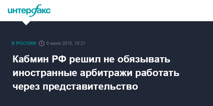 Кабмин РФ решил не обязывать иностранные арбитражи работать через представительство