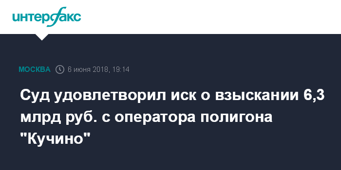 Суд удовлетворил иск о взыскании 6,3 млрд руб. с оператора полигона "Кучино"