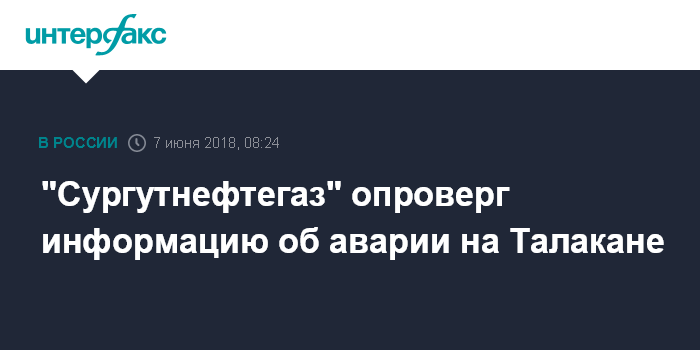 "Сургутнефтегаз" опроверг информацию об аварии на Талакане