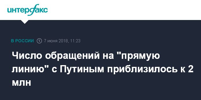Число обращений на "прямую линию" с Путиным приблизилось к 2 млн