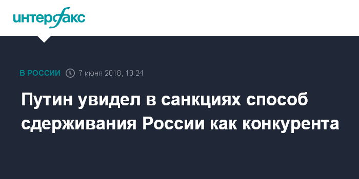 Путин увидел в санкциях способ сдерживания России как конкурента