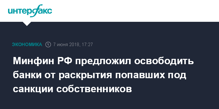 Минфин РФ предложил освободить банки от раскрытия попавших под санкции собственников