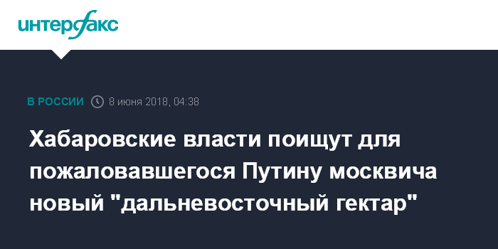 Хабаровские власти поищут для пожаловавшегося Путину москвича новый "дальневосточный гектар"