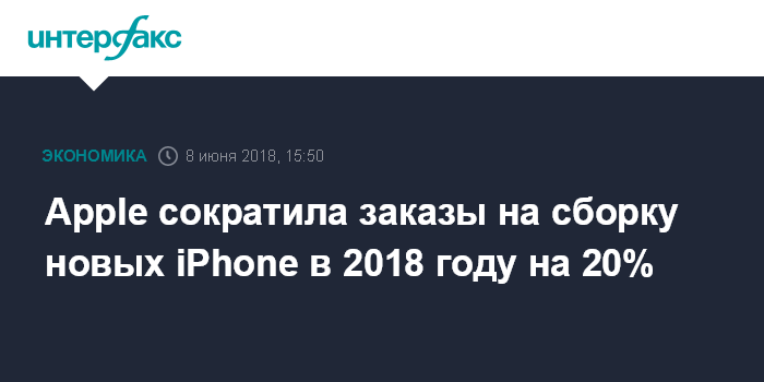 По данным источников, в прошлом году объем заказов на сборку iPhone 8, iPhone 8 Plus и iPhone X, размещенных Apple до официальной презентации устройств, предусматривал выпуск около 100 млн новых устройств. В текущем году - это лишь порядка 80 млн единиц.