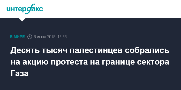 Москва. 8 июня. INTERFAX.RU - Около десяти тысяч палестинцев собрались на акции протеста вдоль границы Израиля и сектора Газа, пишет израильская газета The Times of Israel со ссылкой на источники в израильской армии.