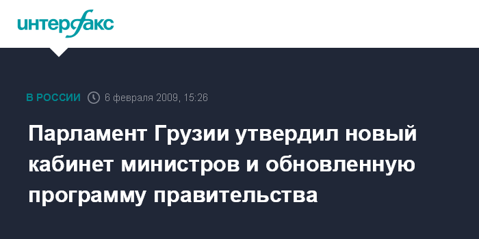 Москва. 6 февраля. INTERFAX.RU - Парламент Грузии на внеочередном заседании в пятницу утвердил состав нового кабинета министров, возглавляемого премьером Никой Гилаури и представленную им обновленную программу правительства "Единая Грузия без бедности".