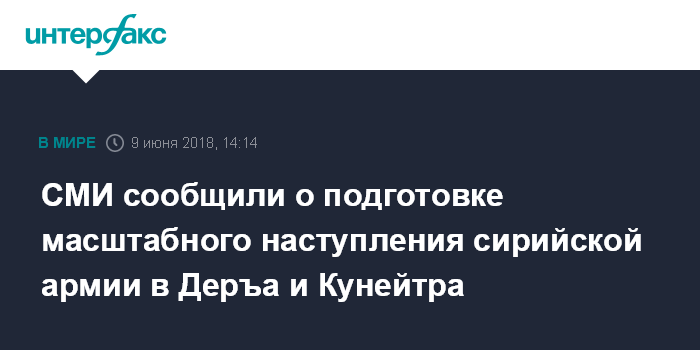 Военные аналитики полагают, что операция сирийских войск в Деръа будет расширена на провинцию Кунейтра близ оккупированных Израилем Голанских высот.