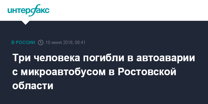 Москва. 10 июня. INTERFAX.RU - Три человека погибли и как минимум четыре пострадали в результате столкновения микроавтобуса и легкового автомобиля в Родионово-Несветайском районе Ростовской области, сообщил агентству "Интерфакс" информированный источник.