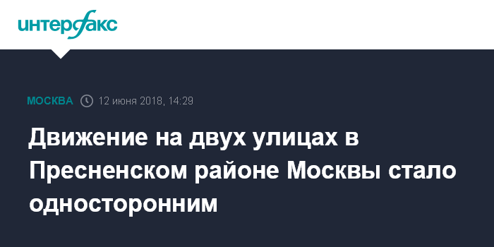 Движение на двух улицах в Пресненском районе Москвы стало односторонним