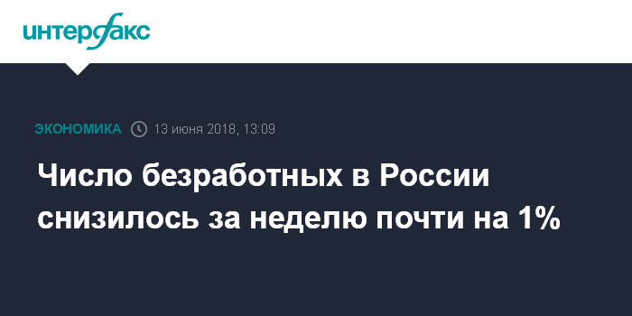 При этом, по последним данным на 1 июня этого года, уровень регистрируемой безработицы в среднем по России составил 1% от численности экономически активного населения, добавили в пресс-службе Минтруда. Там напомнили, что годом ранее этот показатель составлял 1,1%.