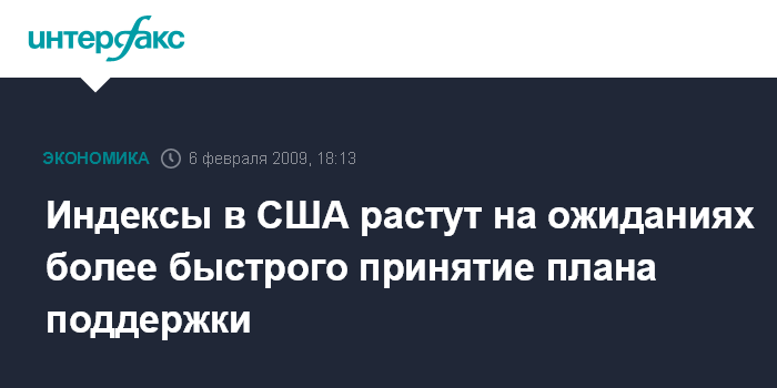 Нью-Йорк. 6 февраля. INTERFAX.RU - Американские фондовые индексы растут в пятницу, несмотря на публикацию данных о росте безработицы в США в январе до максимального уровня с 1992 года, сообщило агентство Bloomberg. Участники рынка надеются на то, что крайне слабая статистика подтолкнет Конгресс к как можно более быстрому принятию плана стимулирования экономики, предложенного администрацией президента США Барака Обамы.
